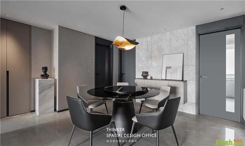· 大理石餐桌、皮質(zhì)餐椅,方便清潔打理,也為空間增添現(xiàn)代時(shí)尚感。