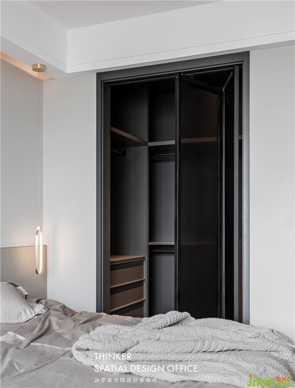 · 借用臥室部分空間做出一個(gè)衣帽間,套房式設(shè)計(jì)讓生活更舒適。衣帽間門(mén)選用長(zhǎng)虹玻璃,做折疊設(shè)計(jì),方便日常衣物的拿放。