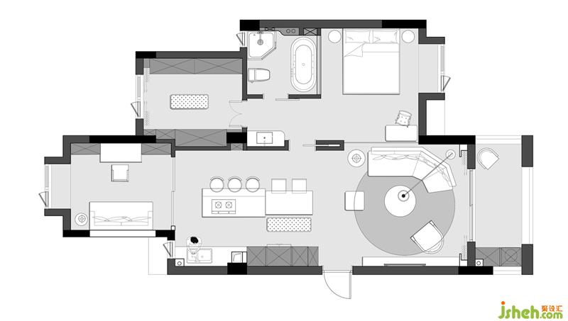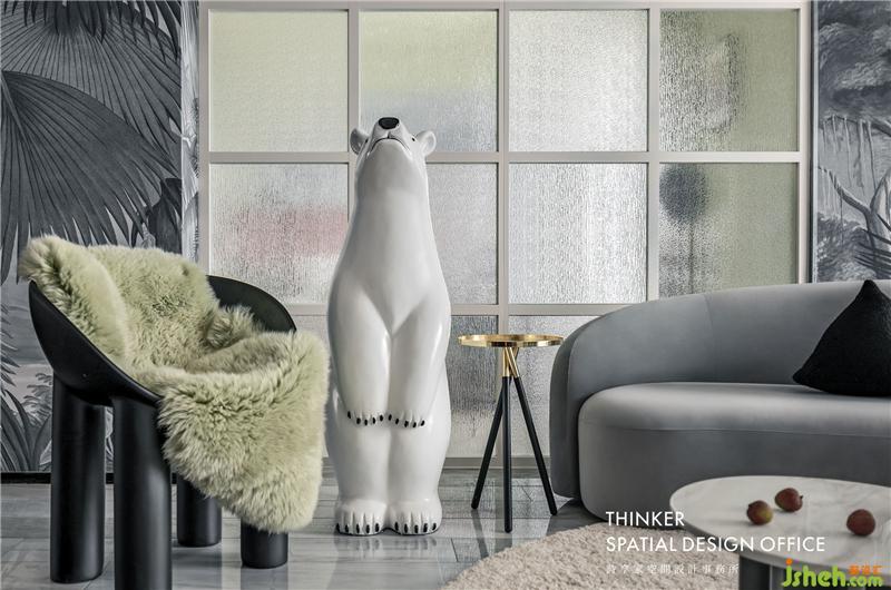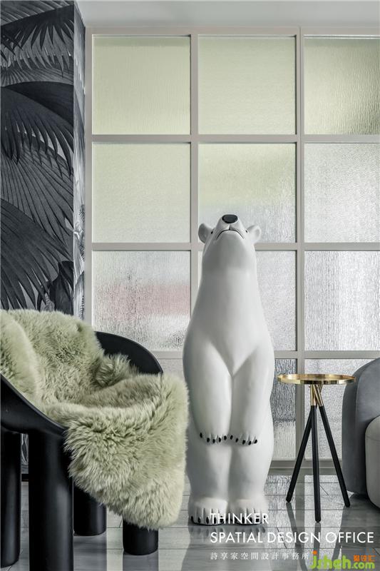 · 屋主平時工作節(jié)奏強,我們希望給屋主一個輕松自在的居家環(huán)境。由于工作太忙碌常常出差,喜歡小動物的她沒有辦法擁有自己的寵物,所以我們特意挑選了一只可愛的北極熊陪伴她。