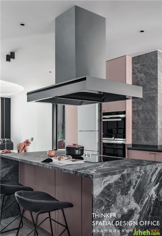 書房和廚房的空間比較封閉,我們直接把廚房開放式處理,餐廚一體,讓空間更加開闊。同時,增設(shè)島臺,讓生活更加多樣化。