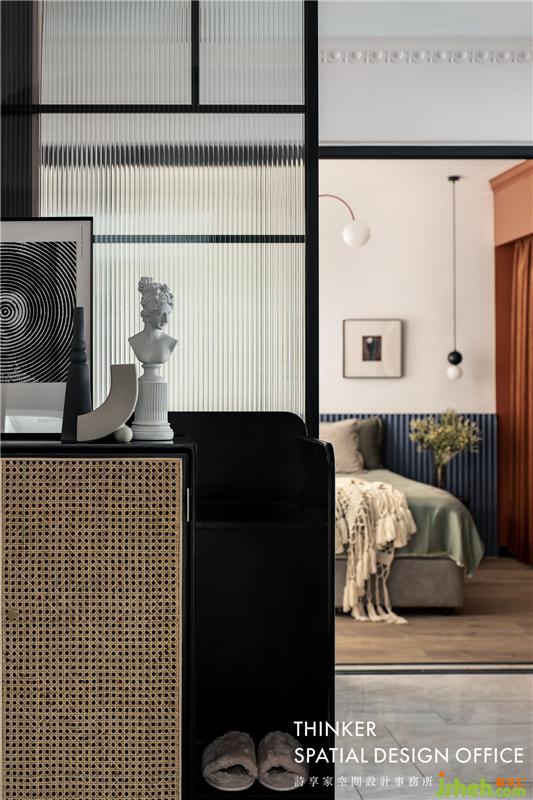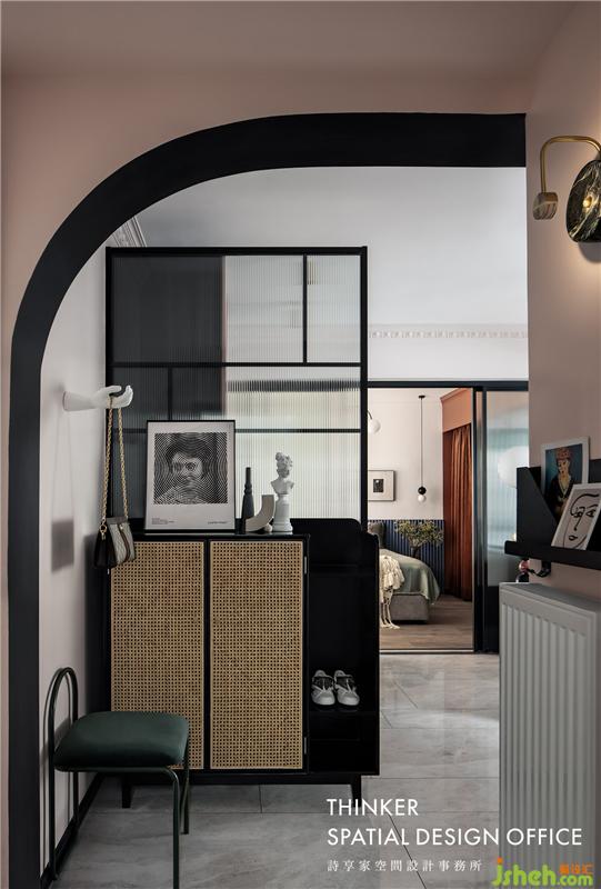 · 借用一點客廳的位置規(guī)劃出一個玄關,方便放置常用的包包,鞋子等小物,Joe特別選了一款藤編柜,老物件的年代感,往往也是時尚的一部分。