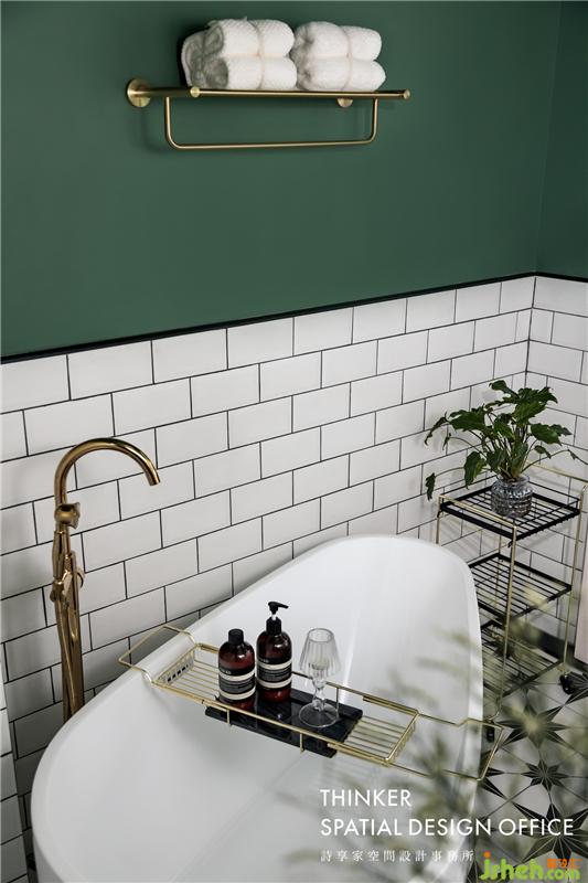 · 衛(wèi)生間并不大,但Shirley心心念念地想要一個有浴缸的浴室,所以特別挑選了一款小巧的蛋殼浴缸,顏值和功能兼具。同時用白色+復古綠的半墻設計,清爽又摩登。