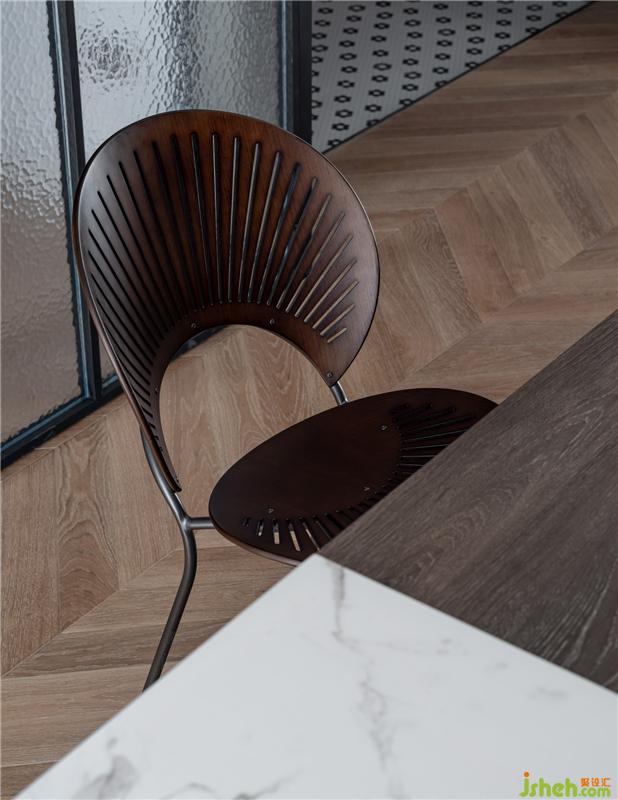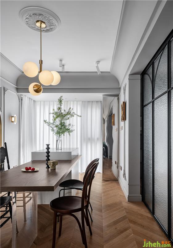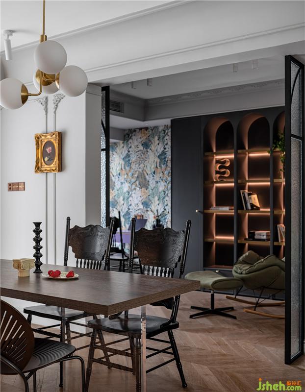 餐廳背靠書房,并以滑動移門隔開,打開移門,兩個空間渾然一體,當(dāng)一人在餐廳做美食的時候,抬眼就能看到伏案靜讀的另一半,愛意滿滿。