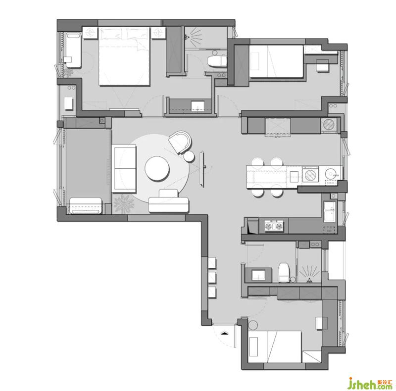 整個居室空間最重要的要數(shù)客廳、餐廳和廚房了,基于屋主特有的生活習(xí)慣和需求,我們對布局進行了一些優(yōu)化。在整體的設(shè)計上更多地去考慮舒適的動線,通風(fēng)、采光、主人與寵物之間的和諧相處,且各有自己的生活空間和足夠的儲物空間。
