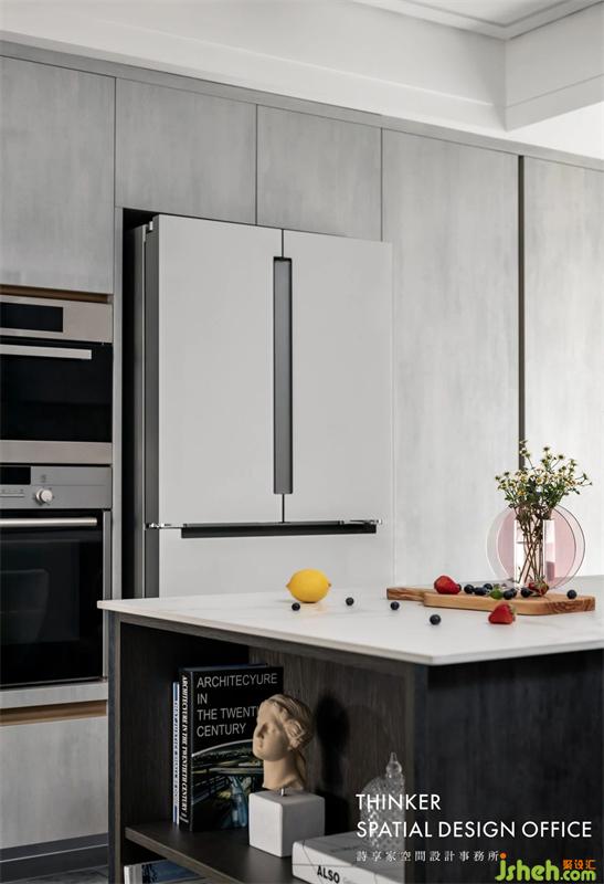 島臺側(cè)邊柜的巧妙設(shè)計(jì),打破了櫥柜設(shè)計(jì)的常規(guī),邊角空間不再是雞肋,將家居設(shè)計(jì)延升至生活所能觸碰的每一個細(xì)枝末節(jié)中,看似寂寂無聲,但若身居其間,當(dāng)知其中真意。