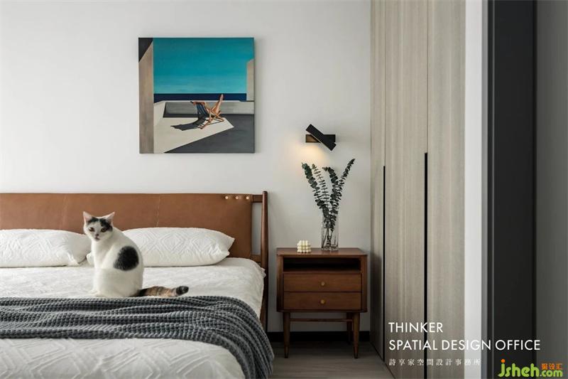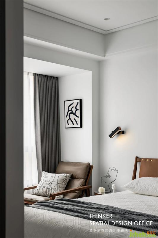 臥室以白色為主色調(diào),再加一點(diǎn)亮色點(diǎn)綴,使其更加充滿靈動性。