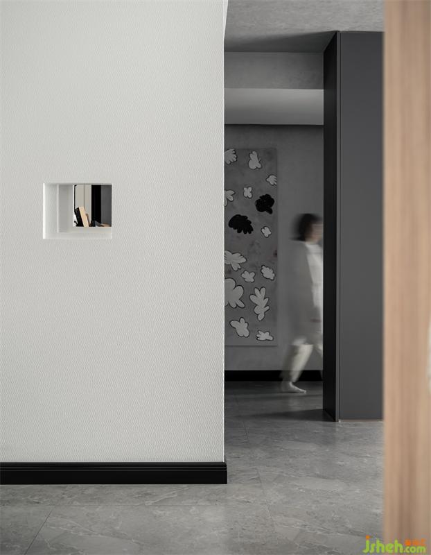 墻面選用福樂閣的刷漆壁布,細膩的紋理質感,與藝術漆、木飾面更匹配?;诓馁|的特性,以后也可以涂刷乳膠漆改色,空間自由度更高。
