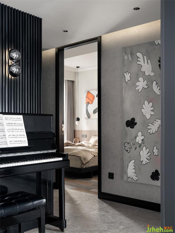 黑色木格柵墻面、黑色門框和踢腳線,與鋼琴遙相呼應。在裝修前娜姐夫婦就詢問了小沈同學的喜好。除了孩子房間,家里很多細節(jié)都征詢了每位家庭成員的意見。