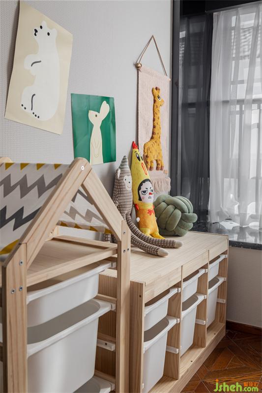 1.35m寬的榻榻米床,小朋友一個人睡足夠了。一大面衣柜,以及榻榻米底部,輕松收納衣服、雜物。一旁的空間專門收納小咪的玩具。環(huán)保木質(zhì)家具,呵護小朋友的健康。
