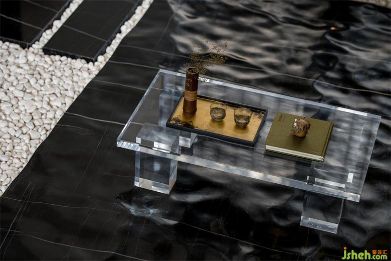 詩意空間設(shè)計踐行「比例之外,沒有美學(xué);生活之外,沒有設(shè)計」的理念,柏悅公館會所設(shè)計以中國水墨畫作為摹本,將曲折之水、錯落之山、迂回之徑、參差之石所構(gòu)成的自然山水以建筑的設(shè)計語匯呈現(xiàn)于空間。墻面細(xì)部線條頓挫剛勁,轉(zhuǎn)折方硬有力,宛如那奇峭險峻間的林泉瀑布飛流直下,以勞倫黑金石材上平緩蜿蜒的線條表現(xiàn)濺落在山澗的曲水流泉,建構(gòu)出別具一格的東方審美意境,營造空間中的詩意靜觀。