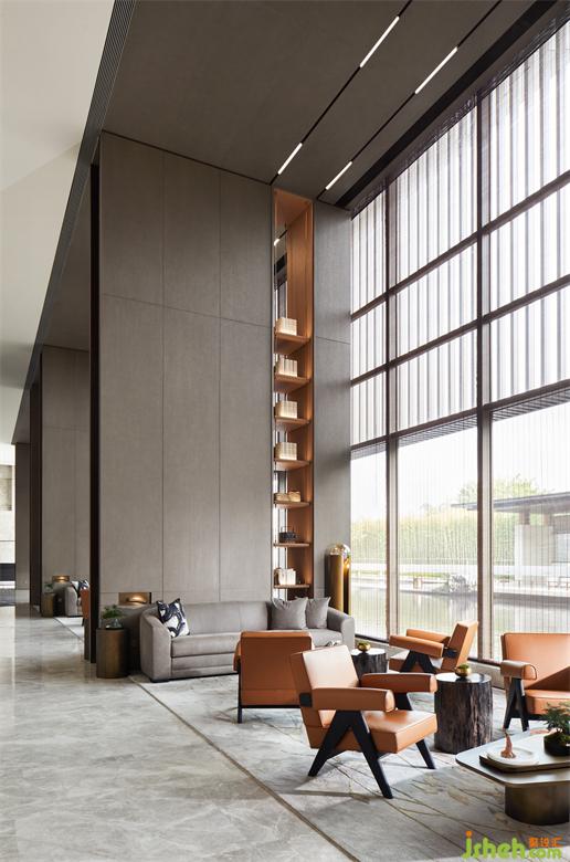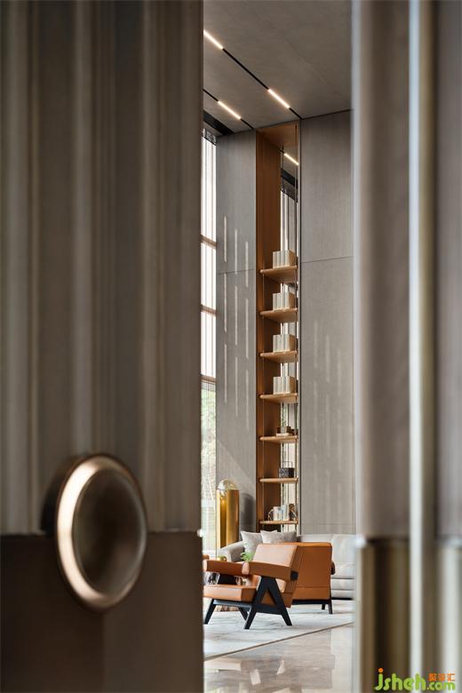 陽(yáng)光透過玻璃照射進(jìn)來(lái),書架上的書法小品、略帶俏皮的木化石圓幾、一捧小小的苔蘚、又或是一株清雅的文竹……柏悅公館營(yíng)銷中心設(shè)計(jì)于傳統(tǒng)和當(dāng)代之間,解讀著待客空間的質(zhì)樸與圓融。