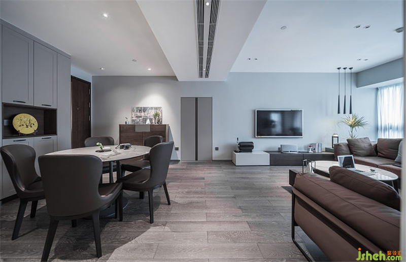 餐廳形式上化繁為簡,整個餐廳空間采用濃淡結合的同色系。室內設計師