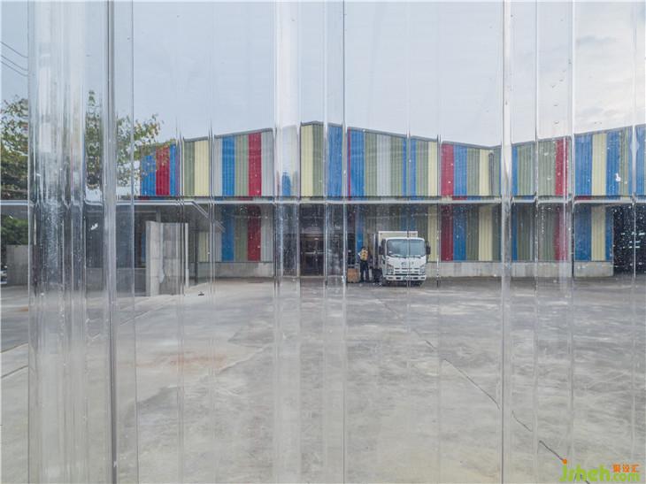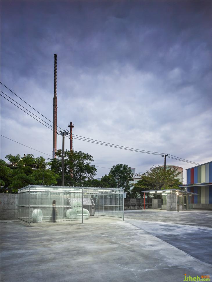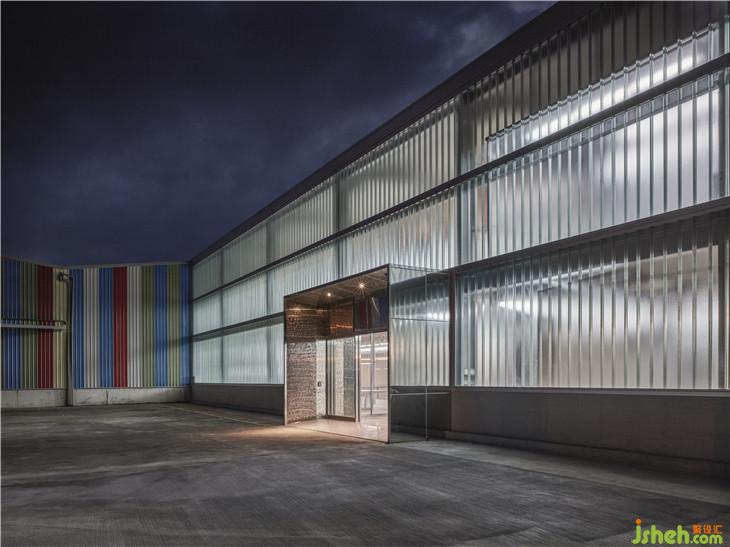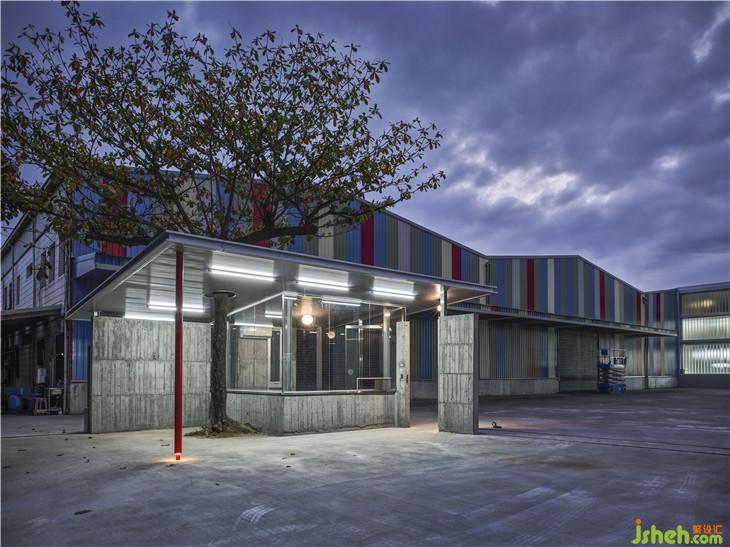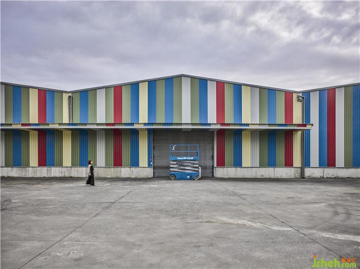 ▲工廠的鐵皮外殼,以飽和大色塊呈現(xiàn)歐陸前衛(wèi)建筑風(fēng)格。