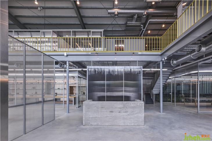 ▲辦公區(qū)廠房改以德國U型玻璃墻引入自然光,同時強化建筑的風(fēng)格印象。