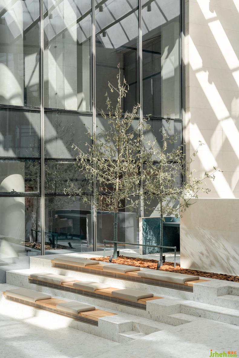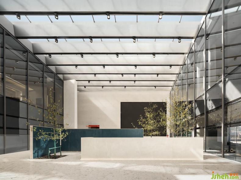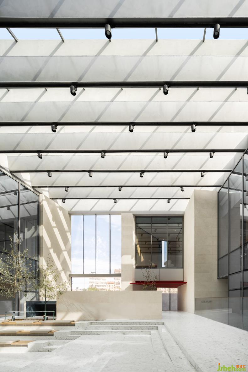 曾經(jīng)的濟(jì)南,泉水淙淙鎮(zhèn)日為伴,流動(dòng)意象滲入聽覺和意識(shí),柔軟整座城的心緒。當(dāng)現(xiàn)代主義的理性效率滲入生活、以利落筆觸改寫城市天際,該如何替建筑的理性添入抒情想象空間?水相設(shè)計(jì)企圖以泉城過往曲水垂柳的街戶風(fēng)貌,柔化當(dāng)代理性主義架構(gòu)的建筑,讓此空間匯入泉城72泉,成為第73號(hào)涓流的意象。