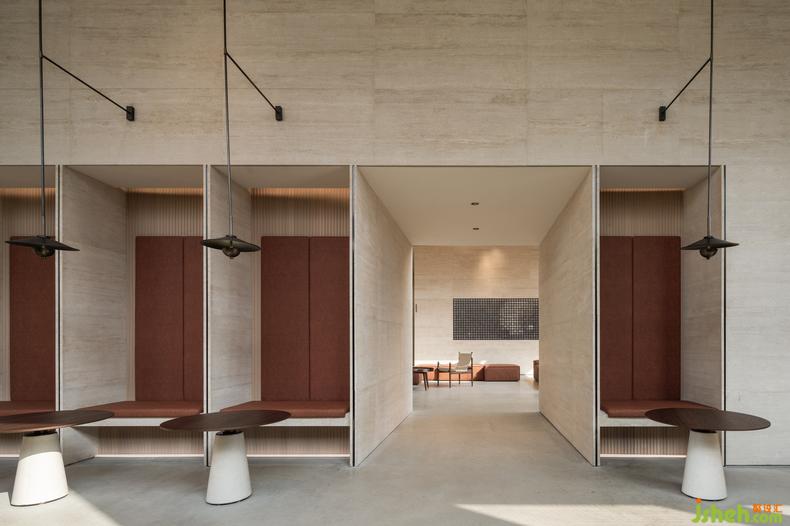 將戲碼頭概念融入建筑停頓點(diǎn)的轉(zhuǎn)借手法,亦應(yīng)用于材質(zhì)選擇。從前里分民居熟悉的磚墻屋瓦,我們改以俯角視之,節(jié)錄這片城市記憶成垂直展開的壁面裝置,藏在現(xiàn)代建筑量體的折痕中,等著與識得的人久別重逢。