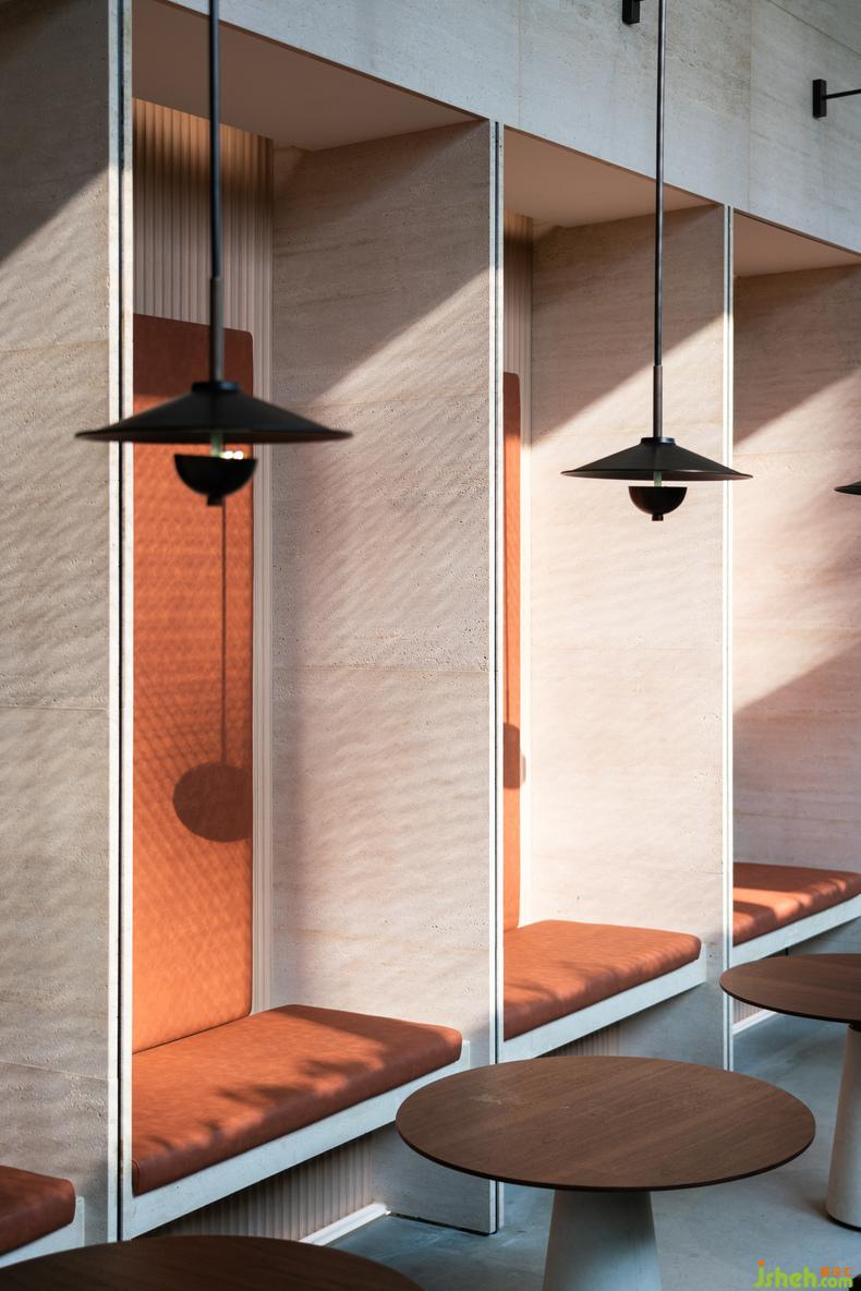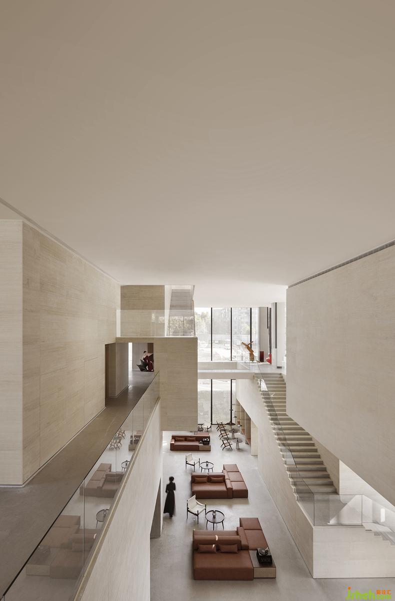 二樓架空的寬闊平臺以階梯作為觀戲座位,眺望對向巨幅墻面投影或任一角落開啟的行為藝術(shù),打破傳統(tǒng)表演/觀賞的靜態(tài)距離,藉由互動互望、演繹回味江灘人文情懷、深化城市靈魂。
