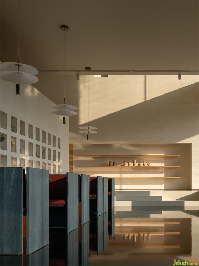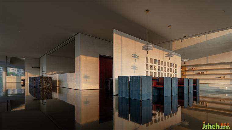 其次是如鏡如硯的墨色拋光地面,裝修設(shè)計(jì)深邃寧?kù)o,卻能透過靜止想像量體流動(dòng),仿佛一絲動(dòng)靜即帶起漣漪驚擾天地。