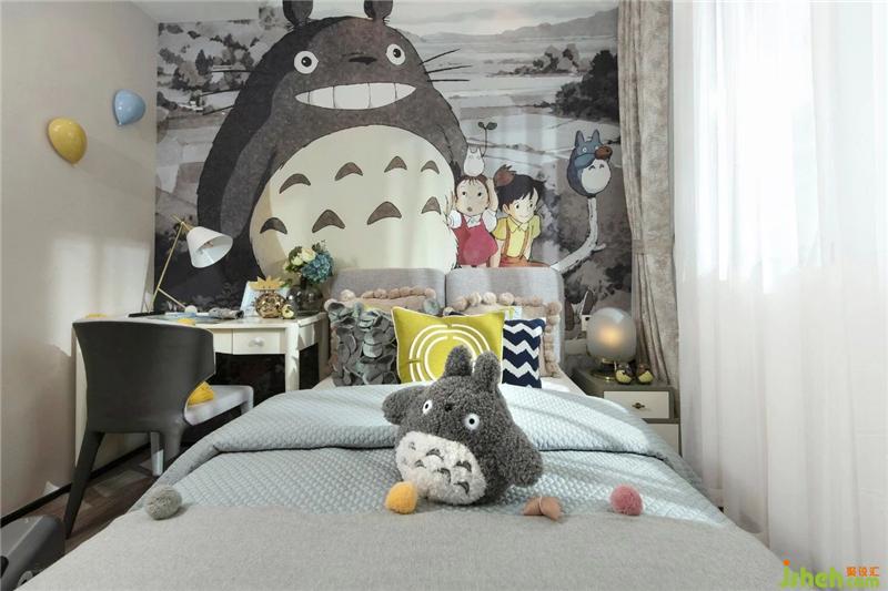 兒童房里我們以宮崎駿的動漫作品《龍漫》為主題!可愛的龍貓背景墻,小汽車的玩具,從天花吊下來的球燈,無不刻散發(fā)出稚嫩無邪的生活氣息。那是只有孩子才能看見的不可思議的世界和豐富的想像!