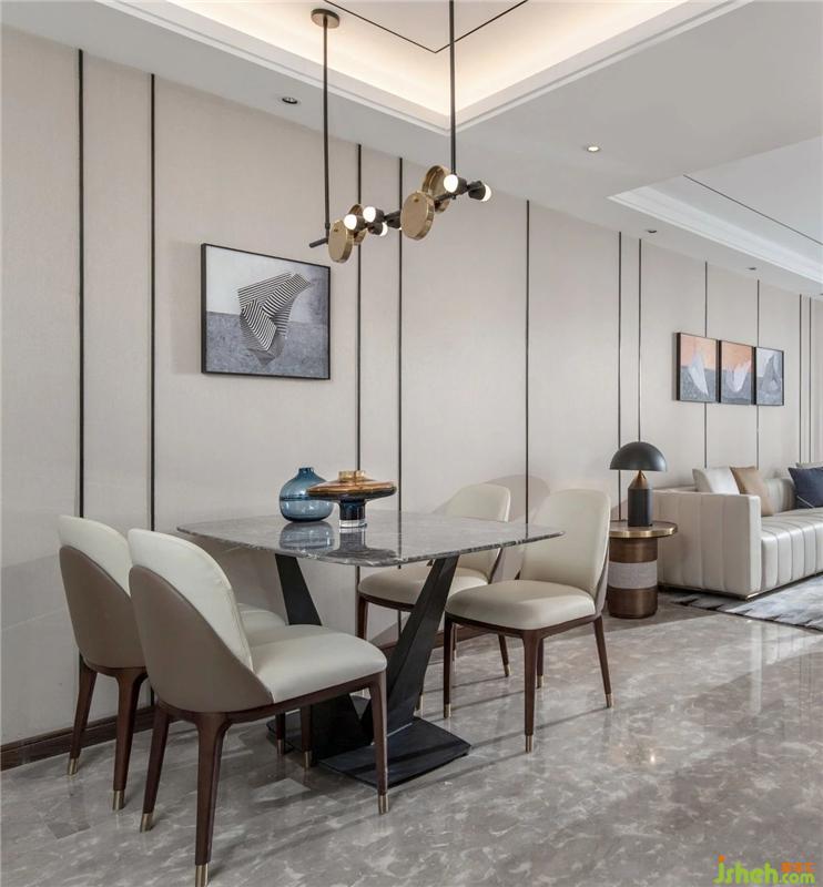 作為家中的公共活動(dòng)和休閑空間,客廳的裝飾多了一些輕松的元素,沙發(fā)和電視比較固定,但是素色的地毯、意向裝飾畫、茶幾的擺件,都是美化空間的好物件。