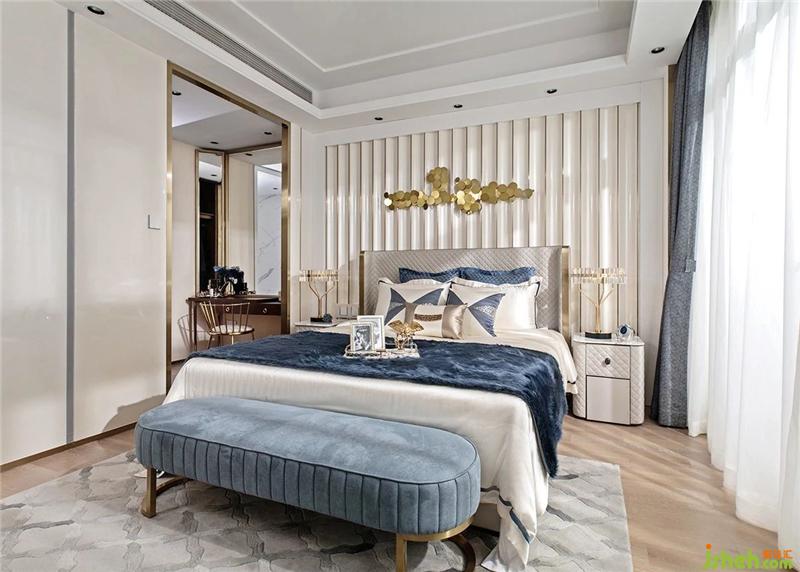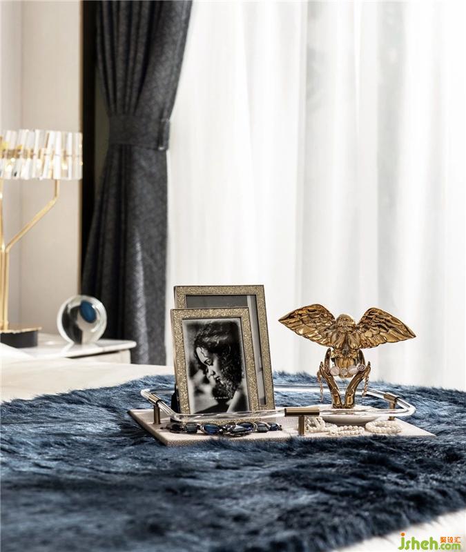 Metallic jewelry conveys an artistic atmosphere of comfort and style. The fabric is soft and the metal is hard. When the two meet, their unique luster creates a full texture, which perfectly balances their strengths and weaknesses. Texture, elegance, comfort, emphasis on detail, calm and restrained, these conditions constitute the temperament of the master bedroom art style.