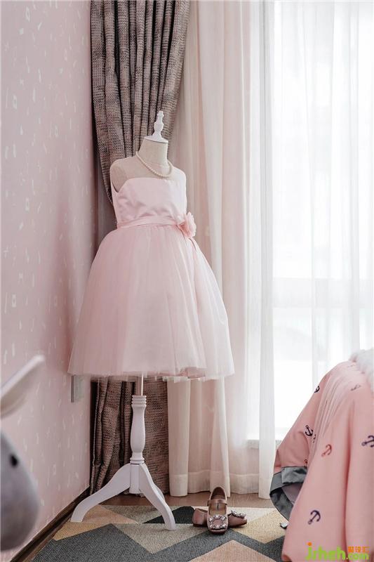 The daughter room chose a clean and clear pink color, and the novelty fun toy and the princess dress matched each other, opening up a small world for the children.