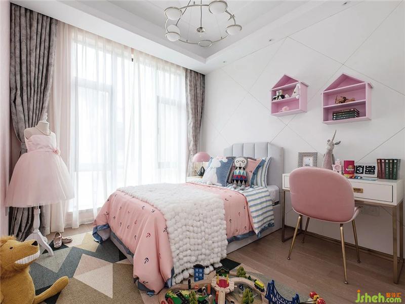 女兒房選擇了干凈清透的粉色,新奇趣味的玩具與公主裙相映成趣,為孩子開辟了一方自在的小天地。