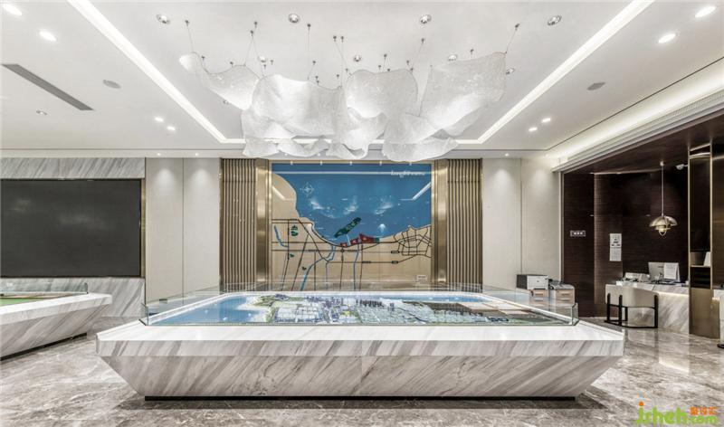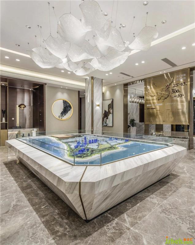 沙盤區(qū)和頂部的吊燈形成了完美的呼應(yīng),如靈動的云與靜謐的海洋,自成景觀。