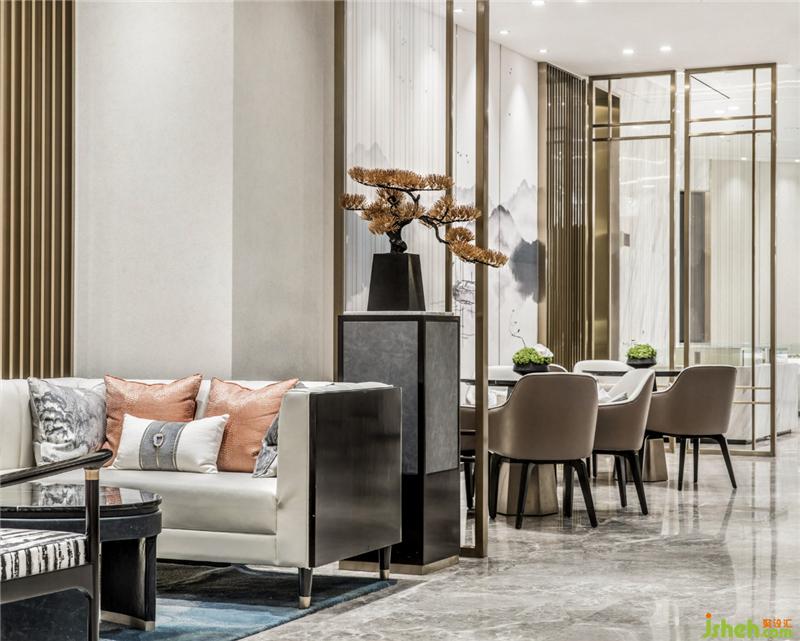 枯松造景佇立中央,云松的堅挺,空靈,營造靜寂,曠逸高古之氣,賦予空間獨特的審美氣質(zhì)和精神氣格。會所設(shè)計