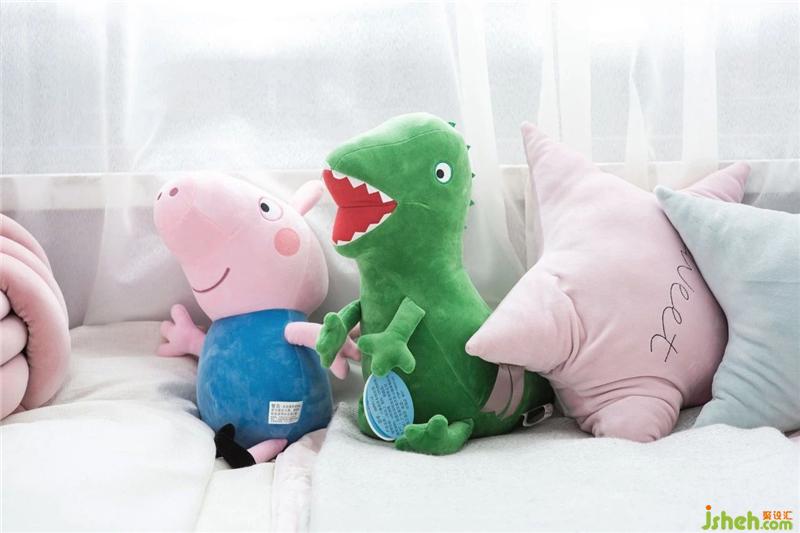 The children's room is the theme of the popular cartoon "Pigpe Pecs". The exquisite metal chandeliers show the artistic atmosphere of the whole space. The 7-year-old girl is full of infinite love for cartoons, with hanging pictures and accessories. In order to highlight the theme of the piglet, it also makes the whole space more life.