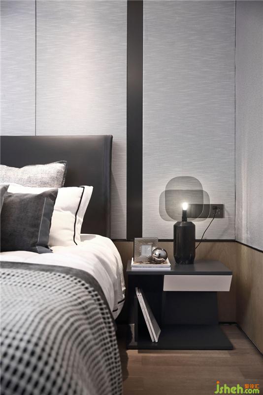 主臥空間光與影相交,藍(lán)與白、黑與灰搭配,采用幾何結(jié)構(gòu),展現(xiàn)空間的豐富性和藝術(shù)感。整個(gè)空間無需刻意引人注目,自然散發(fā)出一股恢宏的內(nèi)在力量。樣板房設(shè)計(jì)