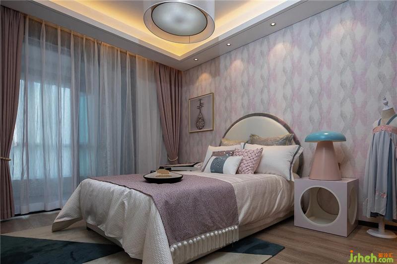 The design of the daughter's room is in keeping with the tone of the whole house, while retaining the pink and light shades that girls generally love. In the room, there are cymbals and zither instruments and ornaments with the theme of Chinese classical music. If you don’t enter the small room, you will hear the sound of the piano.