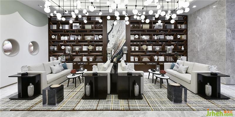 ▼ 書吧 | Book Bar售樓處內(nèi)設(shè)置了多處書柜,軟裝在陳設(shè)藝術(shù)品的選擇上,更著力打造具有東方意蘊(yùn)的飾品,以及給前來購房的業(yè)主提供可供休閑閱讀的空間,同時也提升了整個售樓處的文化品位。裝修設(shè)計