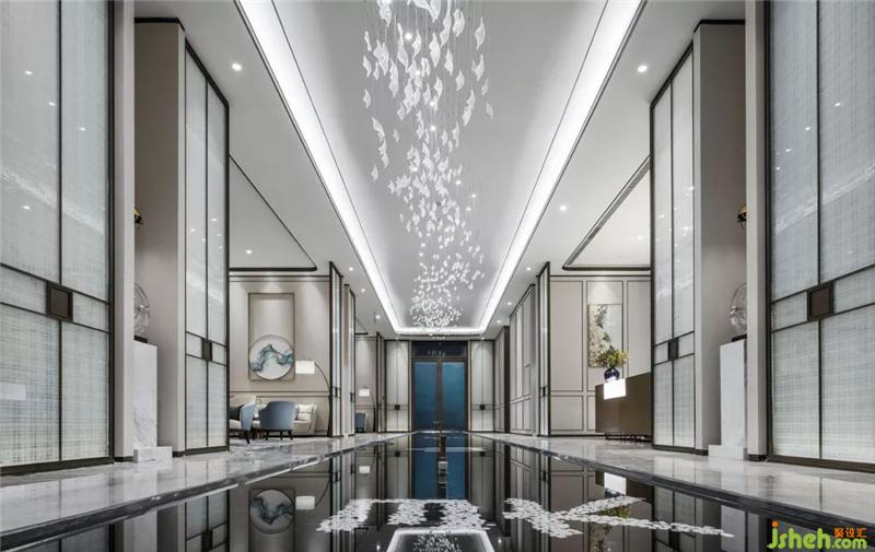 The elevator hall sculpture combines the fallen leaves of natural elements and the platinum crystal of modern materials to give the space a more vivid sense of vitality and ethereal mood, bringing a harmonious ecological aesthetic experience to the whole space.