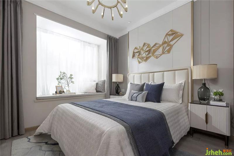 Master bedroom The overall tonal atmosphere, abstract art wall decoration enhances the sense of fashion, chandeliers use metal and glass materials to create a modern and elegant atmosphere. Irregularly stitched carpets give a modern feel to modern life. Sit at the window for a leisurely afternoon with a cup of coffee, listen to a piece of music and enjoy a wonderful afternoon.