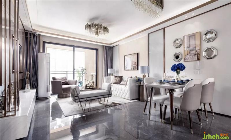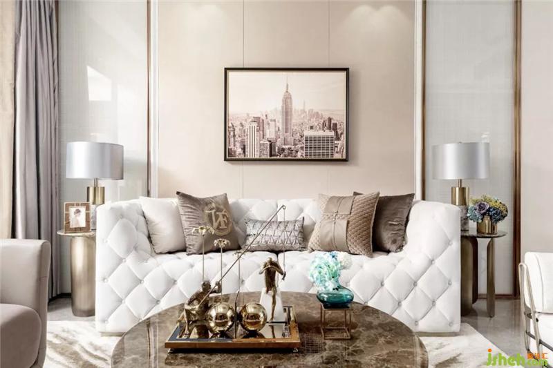 客廳是最能體現(xiàn)居住者個性的地方,如何讓它高端大氣又不俗不媚,設計師的答案是——簡潔的造型、色調的融合、材料的質感,讓人在日趨繁忙的生活中,尚有一方松弛身心之地,以活力和生機來調節(jié)精神空間。樣板房設計