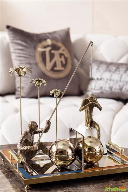 The living room uses high-grade gray as the base. Gray belongs to the cold hue with high brightness. The designer cleverly uses the color's back feeling to make the space look more open, showing the inclusiveness of "great makeup and light touch." The lively metal brightens the makeup of the entire living room.