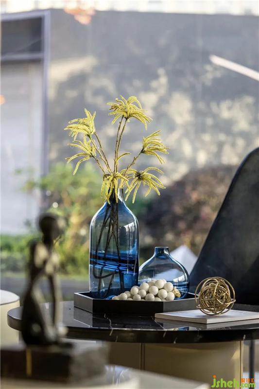 選用了這款紐約照明工作室APPARATUS設(shè)計這款玻璃和金屬結(jié)合充滿節(jié)奏感的吊燈,吧臺上點綴水滴造型的盆栽,增添東方儀式感。裝修設(shè)計