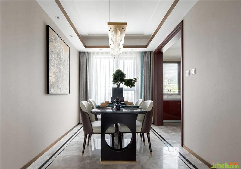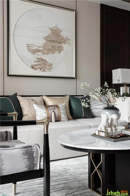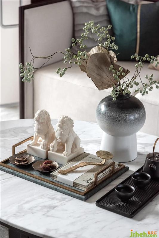 室內(nèi)設(shè)計(jì)師通過將金屬、石材、木質(zhì)和布藝的組合,在現(xiàn)代設(shè)計(jì)語境之下,探索對傳統(tǒng)東方美學(xué)的吸收與創(chuàng)新,在繁華喧囂的都市,追求一種寧靜致遠(yuǎn)的生活態(tài)度。