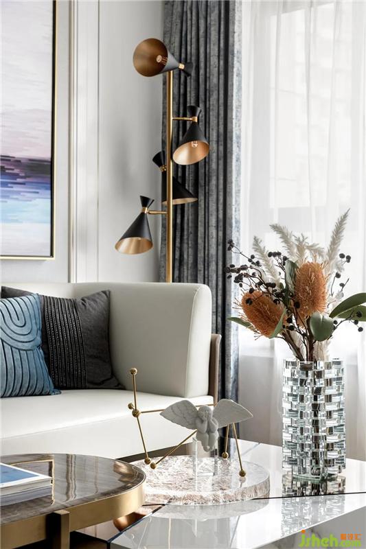 代爾夫特藍的魅力直接被現(xiàn)代風格的家居所青睞,空曠遼闊的視野,自然的景色闖入眼簾,明亮的光線透過窗簾在客廳肆意揮灑,與外界之間的隔斷仿若無物。