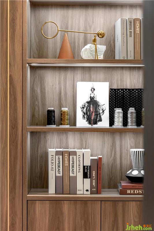 書房以女主服裝設(shè)計(jì)師職業(yè)為切入點(diǎn),樣板房設(shè)計(jì)在營(yíng)造不凡藝術(shù)格調(diào)的基礎(chǔ)上,為她建立一個(gè)相對(duì)個(gè)人化的、豐盈的精神世界。在書房里,聞著書香,探索精神文化的實(shí)質(zhì),心靈的回歸。