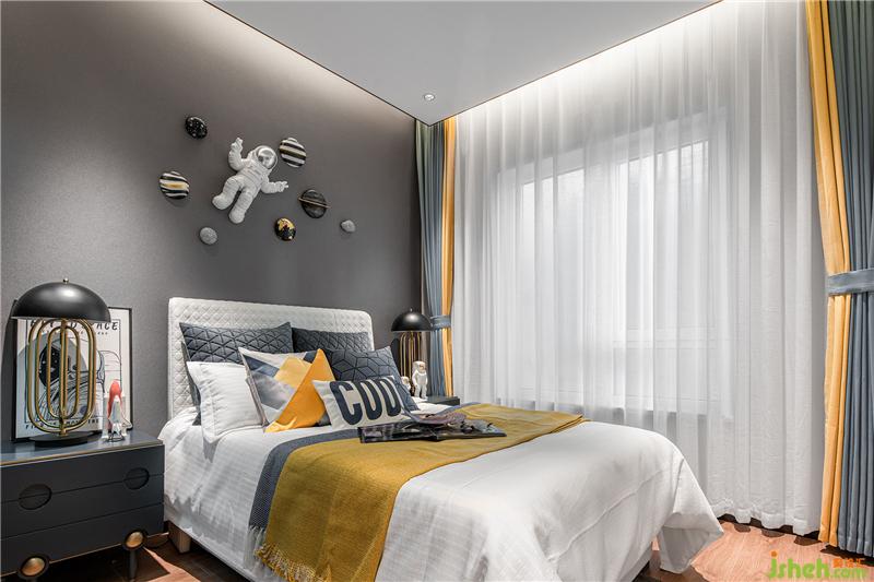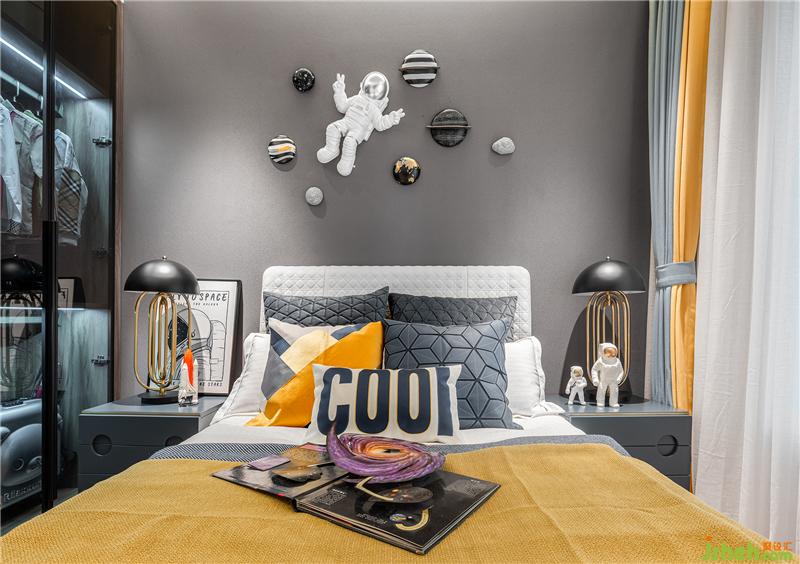 兒童房營(yíng)造遨游太空,穿梭于星際間捕捉夢(mèng)影的場(chǎng)景。想象銀河里藏匿著數(shù)億光年的秘密,群星璀璨的令人著迷神往。