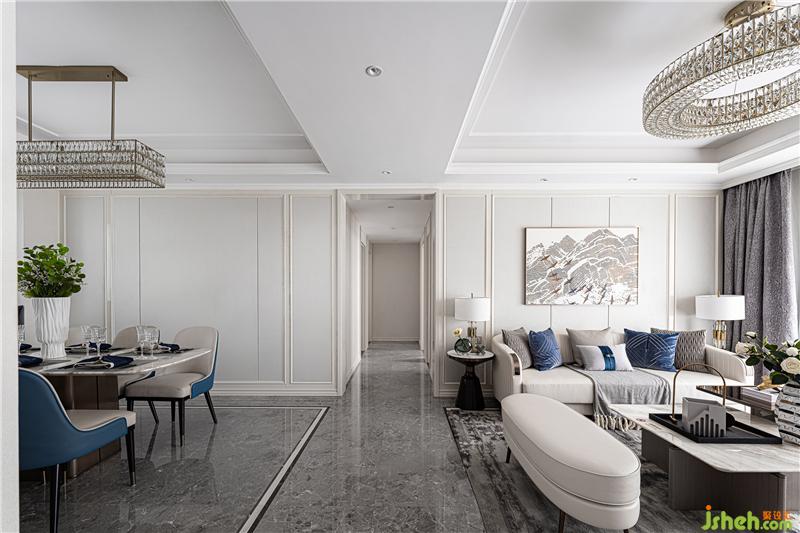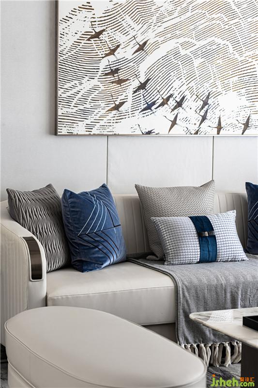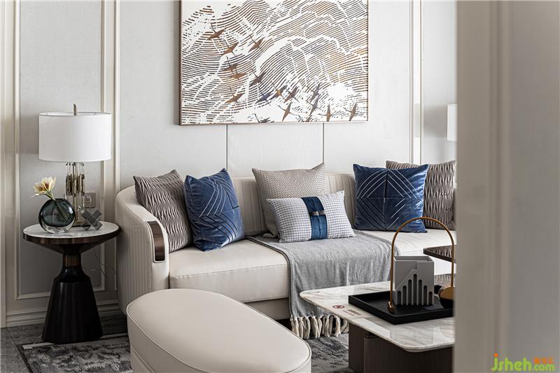 客廳將人文藝術(shù)與空間相融,以現(xiàn)代簡(jiǎn)約的藝術(shù)形式,彰顯出優(yōu)雅的現(xiàn)代摩登奢華氛圍,構(gòu)建超越時(shí)空的經(jīng)典美學(xué)空間。家具及飾品以絲光布藝、大理石、皮革、金屬配搭淺色木飾面,營(yíng)造內(nèi)斂奢華的品質(zhì)感,詮釋出都市精英人群的品味與風(fēng)范。
