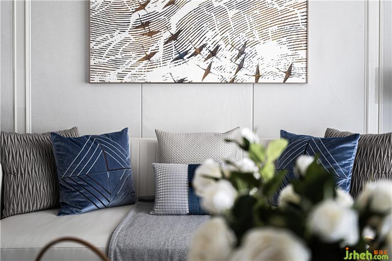 家承載著主人對(duì)于生活期許,我們選用淺色紋理背景墻、雅致的灰藍(lán)與淺色的基調(diào)挑起了空間的韻律美感,于光和影的對(duì)話里,散發(fā)空間的魅力。