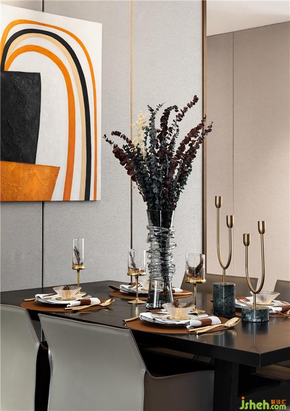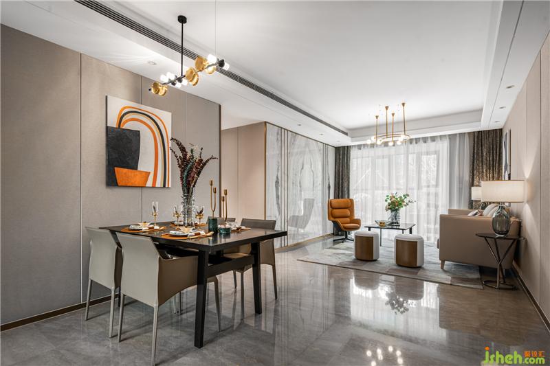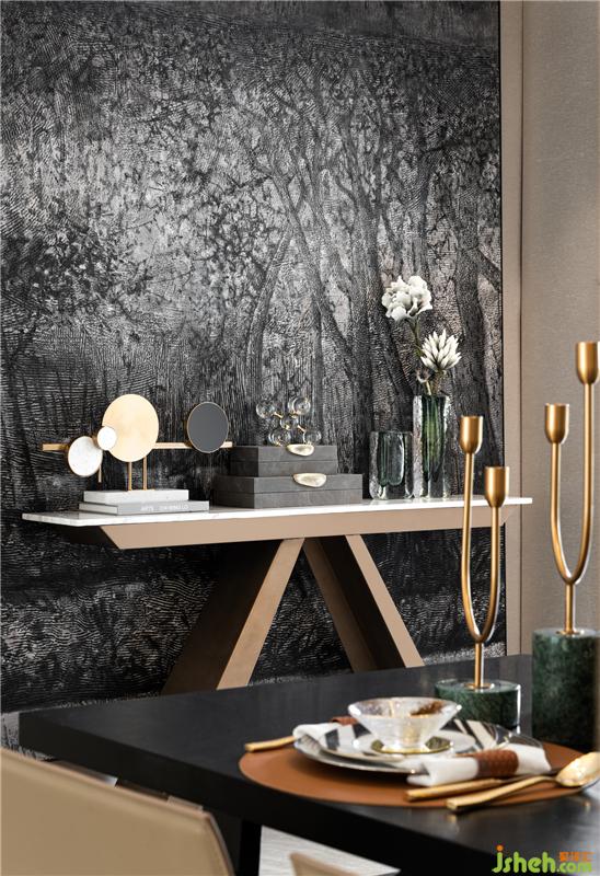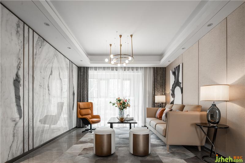 牽掛如山,還有一水之隔,搖晃思念,滴答滴答,相聚終有時(shí)。空間以黑白灰為主色調(diào)、金色、咖色與藍(lán)色點(diǎn)綴。運(yùn)用高級布藝、大理石、優(yōu)質(zhì)皮革以及金屬材質(zhì)。以黑白灰為主色調(diào),咖色作為點(diǎn)綴色的現(xiàn)代風(fēng)格布置下使人有一種溫馨的感覺。