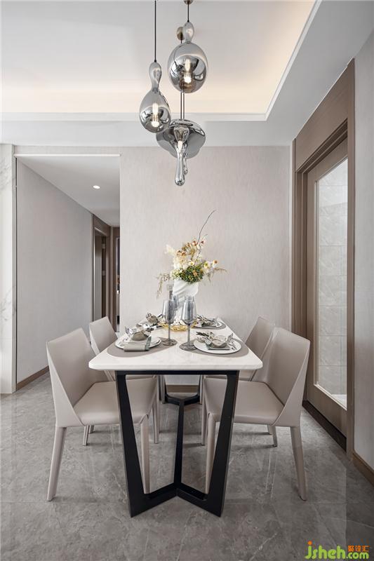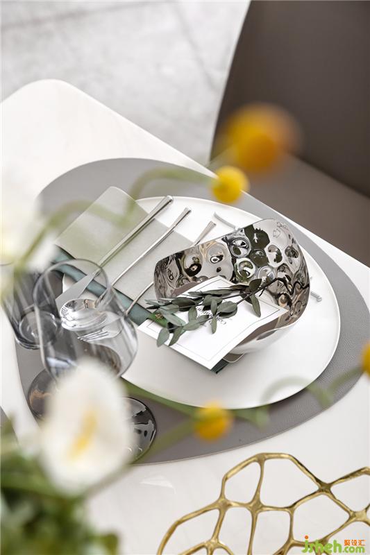 在餐廳空間的形態(tài)中,生機勃發(fā)而溫婉的花藝與利落的現(xiàn)代餐椅,在設(shè)計的調(diào)度下保持著一種平衡,在濃烈與素雅、奔放與內(nèi)斂間,取得和諧而朦朧的美感,配上同色系列的花藝,使空間更加飽滿而充滿生機,Shawn Yue一家三口的溫馨用餐畫面已經(jīng)呈現(xiàn)在眼前。