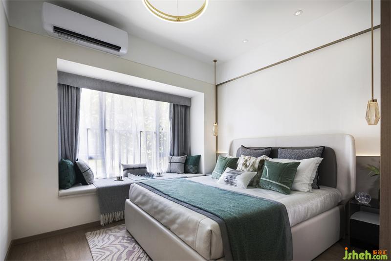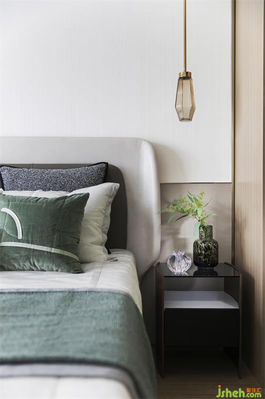 臥室是理性營(yíng)造的積極生活所帶來(lái)的幸??臻g。我們?nèi)砸砸荒ňG意為主調(diào),以柔軟的布藝柔化空間的感覺(jué),提升空間的舒適度。木地板細(xì)膩柔和的光澤感,仿佛是添加了一層柔光濾鏡,床頭垂掛兩只極具藝術(shù)感的燈具,更加突顯臥室的風(fēng)情,溫暖而舒服的大床,自然在其中悄然演繹,與平靜有序的時(shí)光一同溫存出優(yōu)雅的韻味。