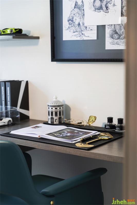 書(shū)房是展現(xiàn)戶(hù)主深層底蘊(yùn)的場(chǎng)所,同時(shí)也是運(yùn)籌帷幄的思考空間。樣板房設(shè)計(jì)上我們追求空間的主體性與實(shí)用性,墻面的掛畫(huà)粘貼的是男主人隨筆的工筆畫(huà),只為記錄轉(zhuǎn)瞬即逝的靈感,簡(jiǎn)潔干練造型的書(shū)桌,能讓男主人在此盡情創(chuàng)作。