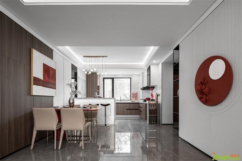 客廳大幅寬的落地開窗,最大限度地將陽光引入室內(nèi),讓客廳融入自然。LDKB一體化的設(shè)計(jì),不光從空間感知,也從動(dòng)線規(guī)劃上優(yōu)化到了極致。餐廳與廚房相連,天花的暗藏?zé)魩⒉僮髋_(tái)點(diǎn)亮,視覺上擴(kuò)大了空間的通透性。邀三兩好友,來一次愉快的聚會(huì)吧,酒杯與思想一起碰撞,擦出無邊幻想的火花,美好的生活就此展開。