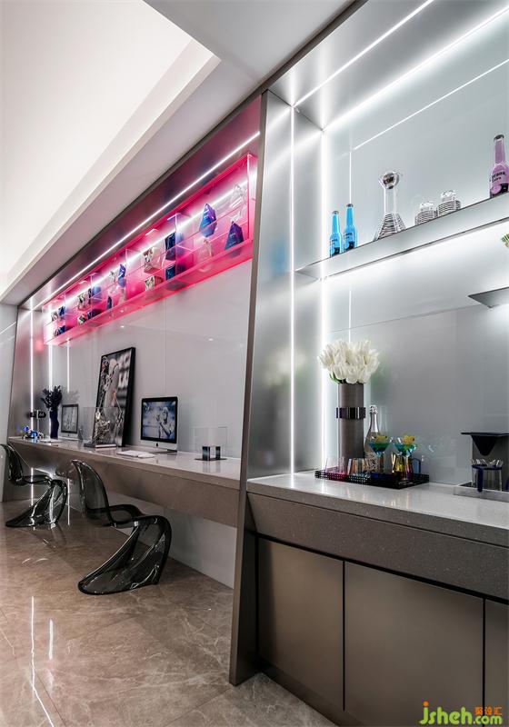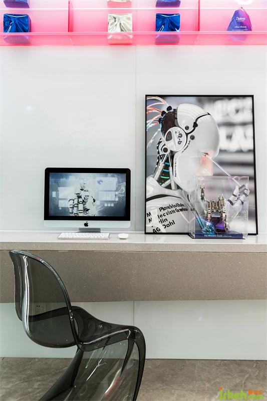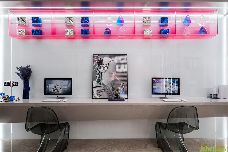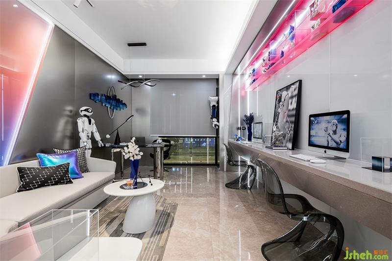 辦公區(qū)配以造型別致的桌椅,打破了空間的單調(diào),展示區(qū)墻面機器手臂掛飾以及大屏電腦配置為來訪者提供互動體驗,感受科技的神秘力量,以此致敬科技的發(fā)展,表達對科技探索的渴望,引領(lǐng)著人們在舊范式與新空間,未來與現(xiàn)實,虛與實,動與靜中來回穿梭,營造一個年輕,時尚,個性又充滿科技感的辦公空間。